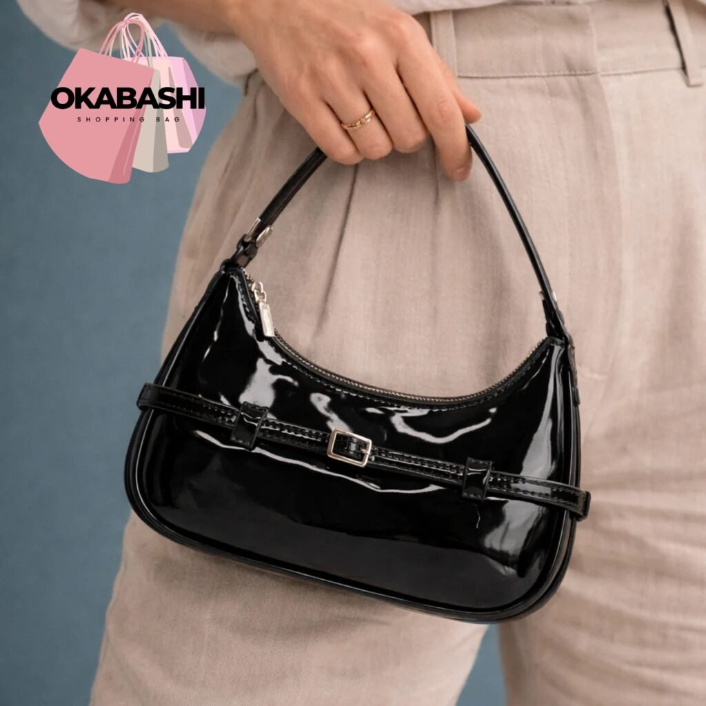 Embrace modern luxury with the Okabashi Black Patent‑Leather Baguette Handbag, crafted for women who appreciate elegance and sophistication.